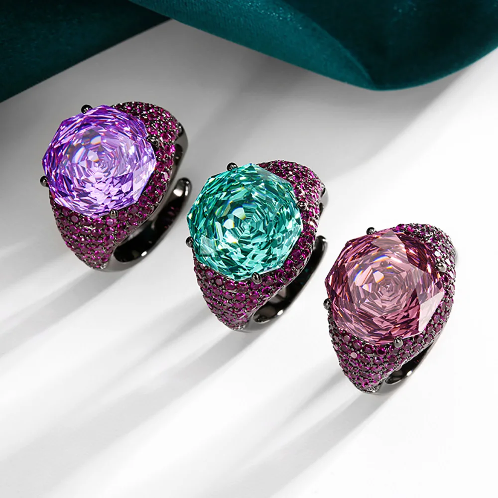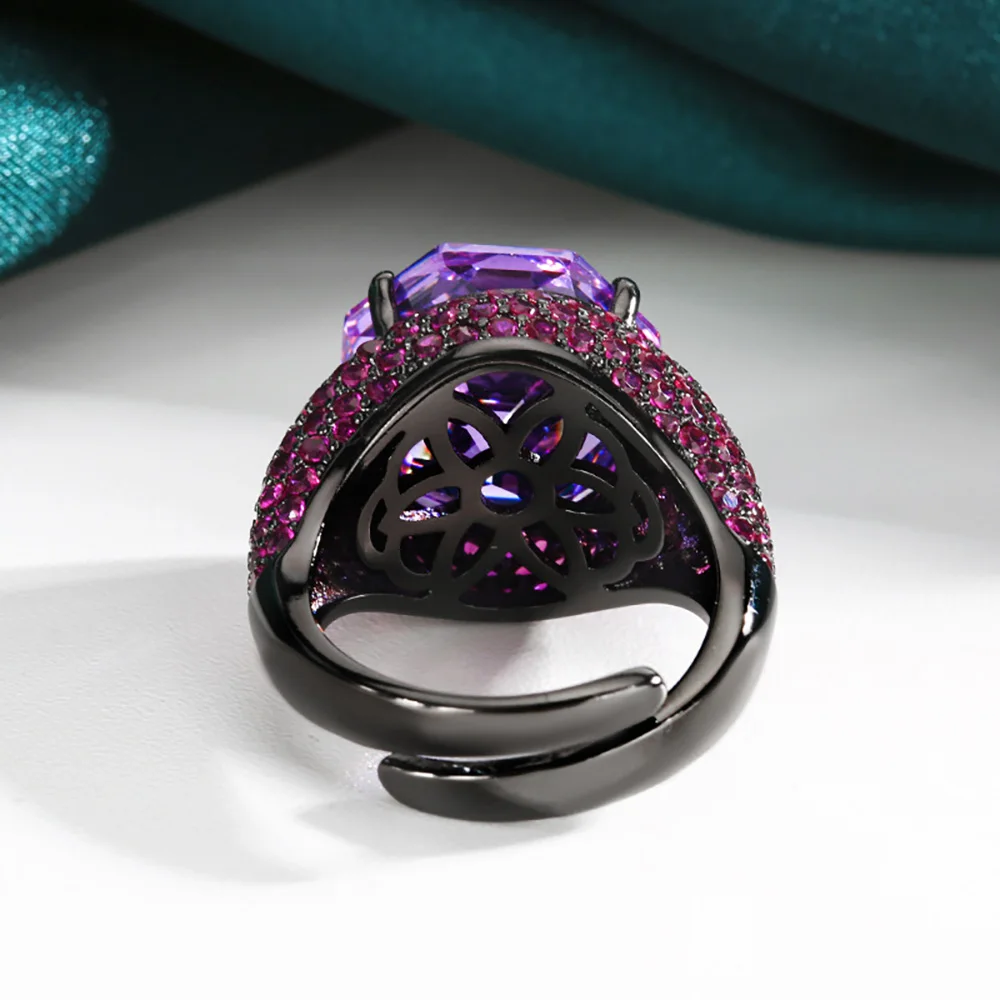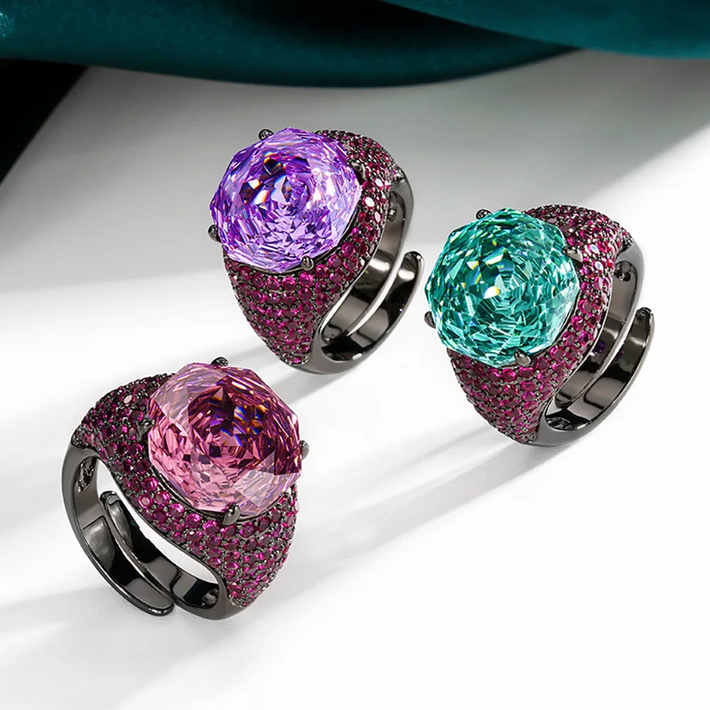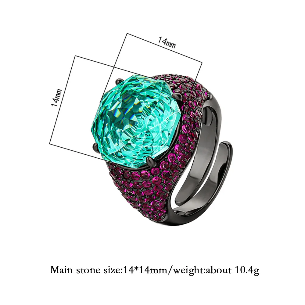 Luxury 14*14MM Pink Quartz Green Tourmaline Amethyst Rings Gemstone Party Fine Jewelry for Women Famale Accessories Bithday Gift