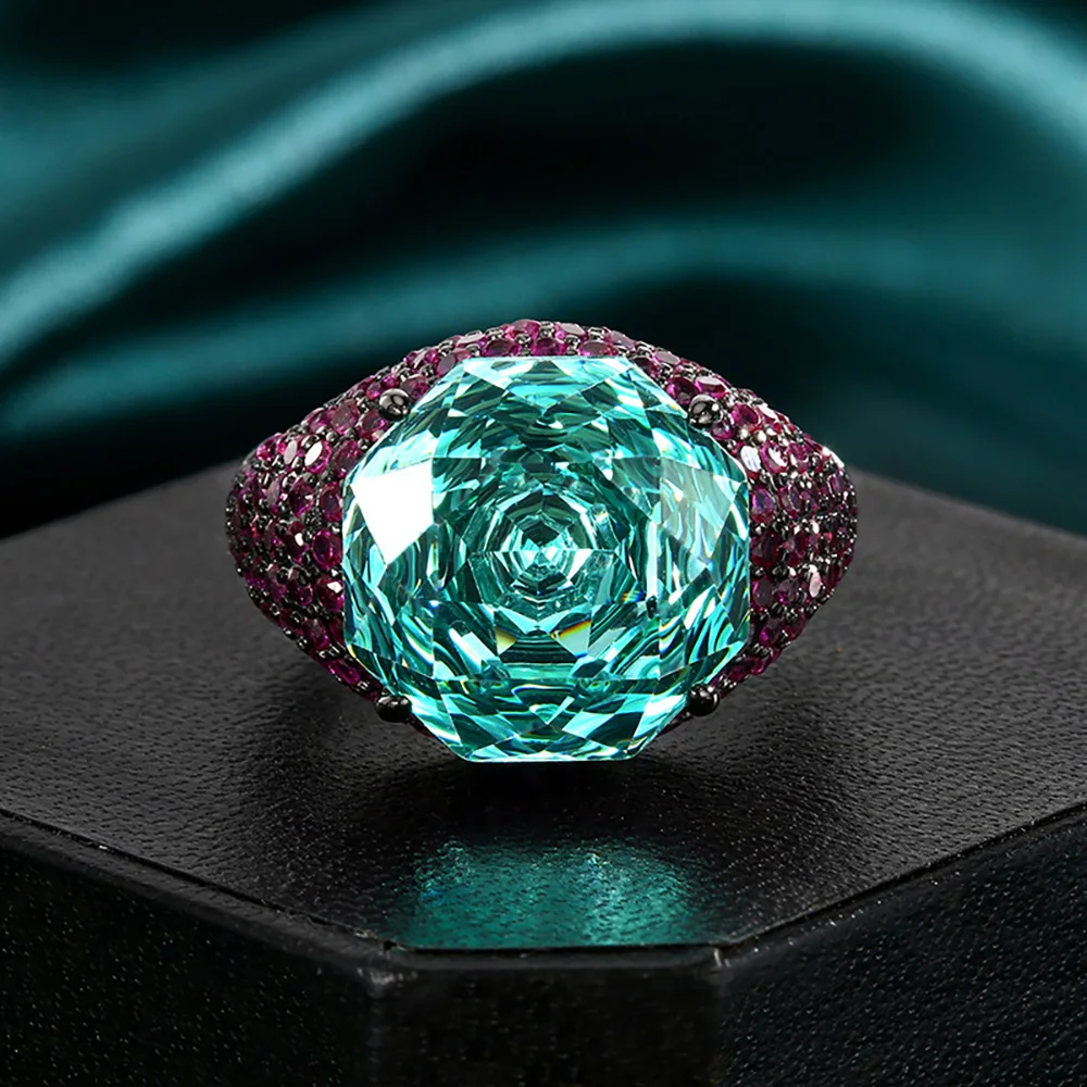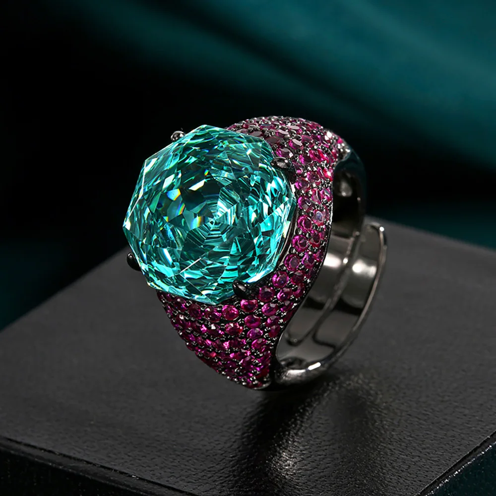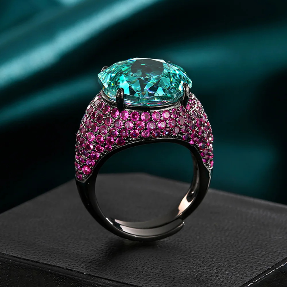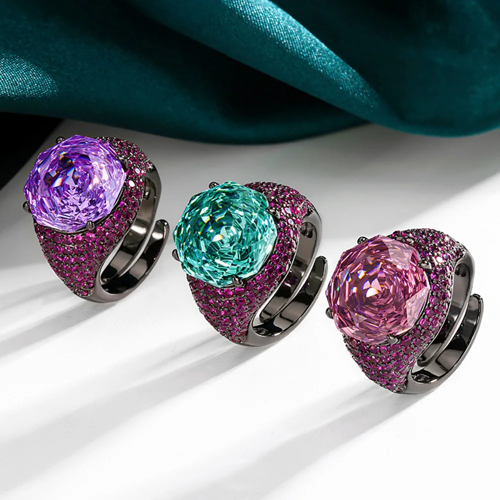 Luxury 14*14MM Pink Quartz Green Tourmaline Amethyst Rings Gemstone Party Fine Jewelry for Women Famale Accessories Bithday Gift