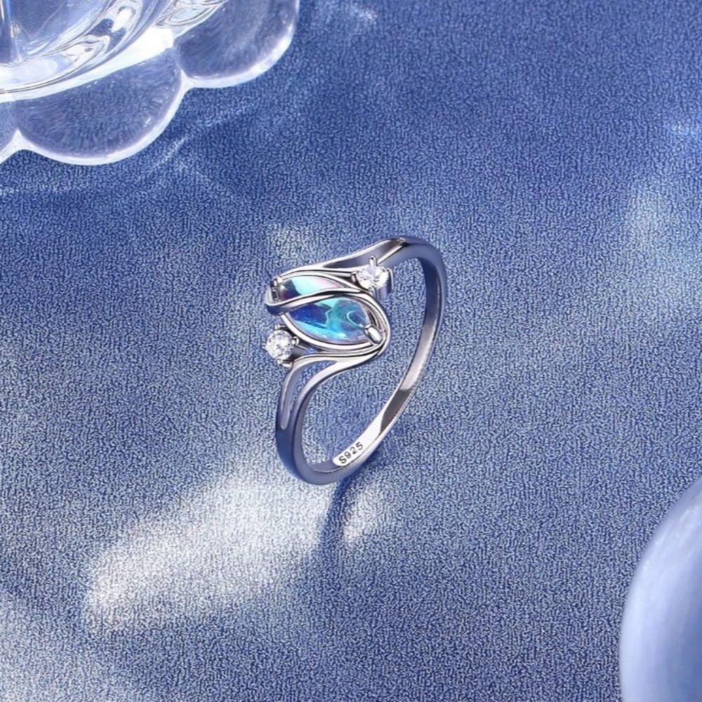 Moonstone Ring 925 Sterling Silver Rings for Women Rainbow Cubic Zirconia Accents Ring Statement Rings with Box