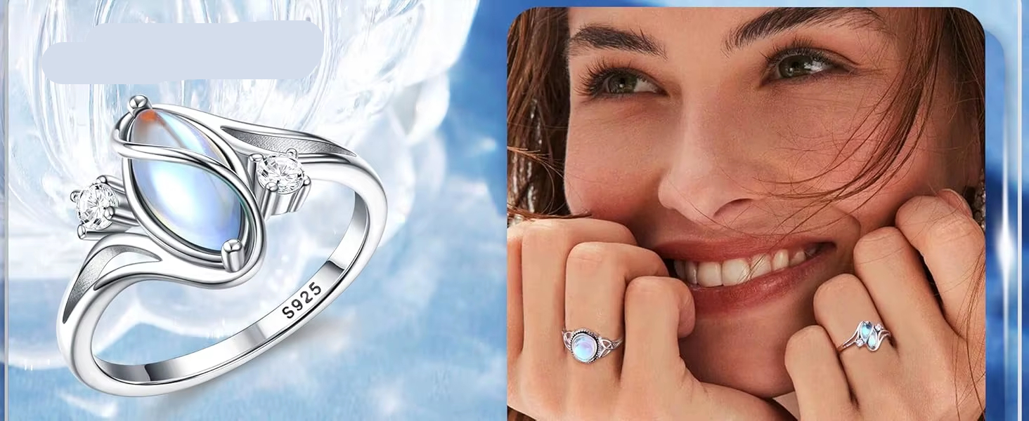 Moonstone Ring 925 Sterling Silver Rings for Women Rainbow Cubic Zirconia Accents Ring Statement Rings with Box
